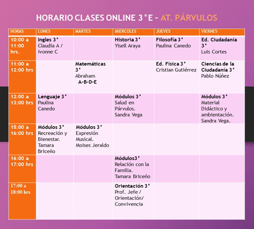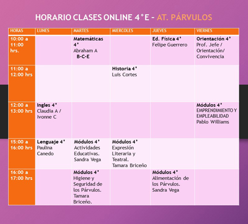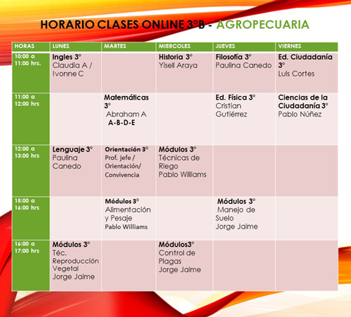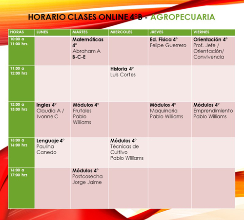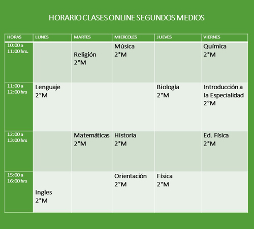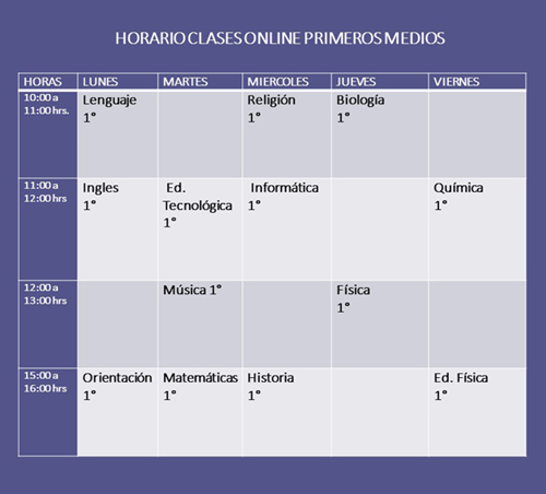 Te invitamos a que revises tu horario de clases online, ya que será la viá para tu aprendizaje que nuestro establecimiento te brindará.