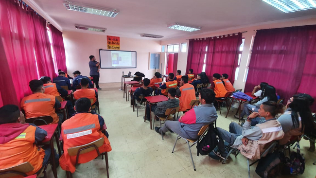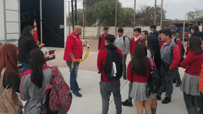 Día 11-03-2020, alumnos de las especialidades de Electricidad, Construcciones Metálicas y Agropecuaria recibiendo capacitación en Trabajo en Altura, Maquinaria Pesada y Riegos Eléctricos.