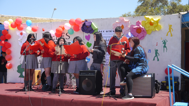 - La profesora de música Magdalena Morales quien interpreto sentidas canciones de rock