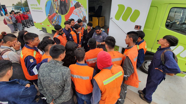 Día 11-03-2020, alumnos de las especialidades de Electricidad, Construcciones Metálicas y Agropecuaria recibiendo capacitación en Trabajo en Altura, Maquinaria Pesada y Riegos Eléctricos.